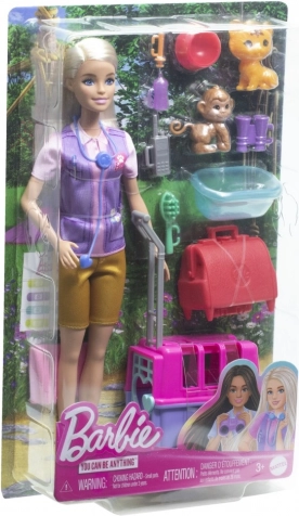 Uz set Barbie spasiteljice životinja djeca uranjaju u svijet veterinarske skrbi i spašavanja divljih životinjica. Lutka ima pokretne udove, nosi praktičnu terensku odjeću i spremna je za svaku misiju. Dva mladunca – majmunčić i tigrić – čekaju pregled, hranjenje i brižnu njegu.