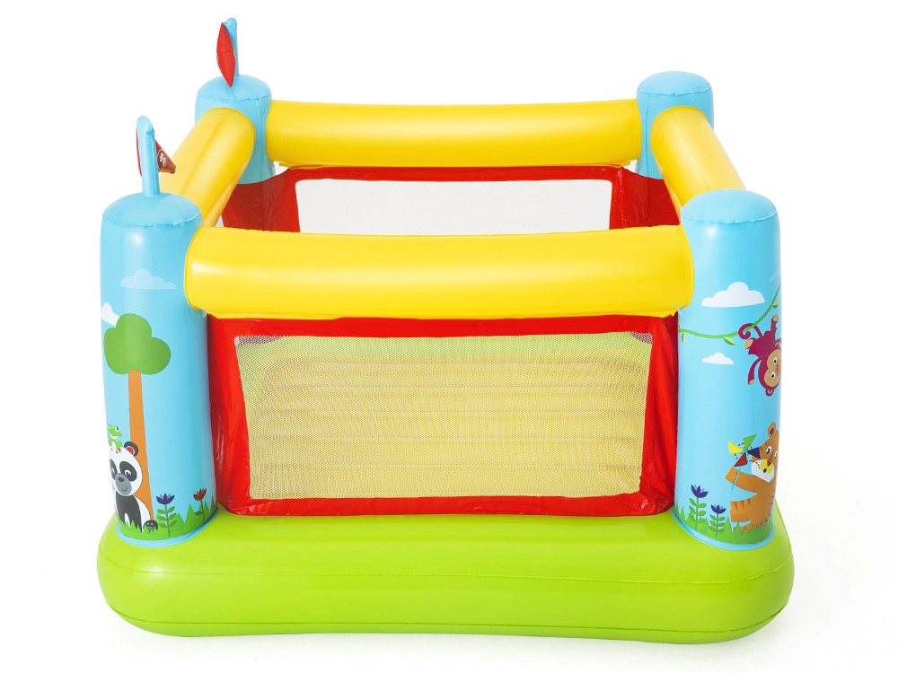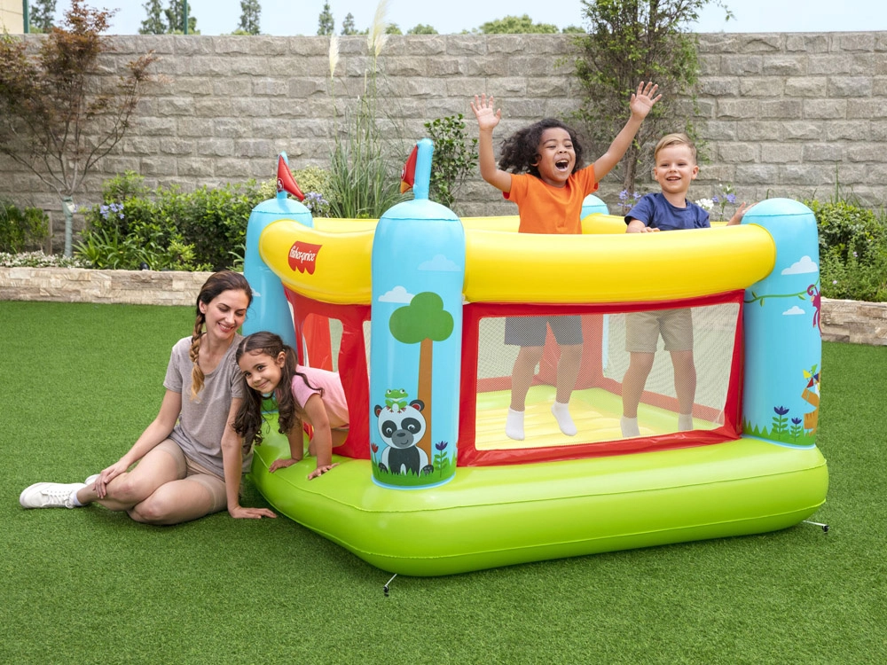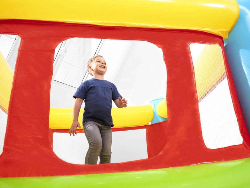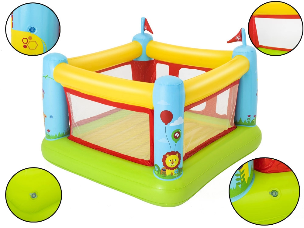 Napuhani dvorac Bestway FISHER‑PRICE stvara siguran i udoban prostor za skakanje, veselu igru i slobodnu zabavu. Prozirni mrežasti paneli osiguravaju dobru vidljivost i protok zraka, dok mekane zračne stjenke i pod ublažavaju doskoke. Zahvaljujući kompaktnim dimenzijama pristaje u većinu dječjih soba, kao i na terasu ili u vrt.