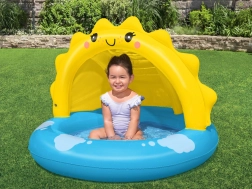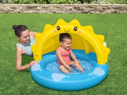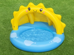 Napuhani bazen Bestway je savršen izbor za vašu djecu tijekom vrućih ljetnih dana. Zahvaljujući svom prijateljskom dizajnu sa suncem i plavim oblacima, nudi ne samo radost u igri već i sigurno utočište od sunca.