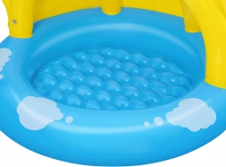 Bazenčić se može pohvaliti veselim dizajnom sa žutim suncem i plavom pozadinom oblaka, koji će privući pažnju svakog djeteta.