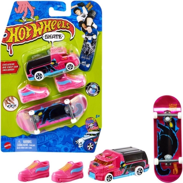 Ovaj set nudi jedinstvenu kombinaciju fingerboardinga i kreativne igre s Hot Wheels autićem. Kolekcija je izrađena s naglaskom na detaljnu izradu i metalik grafiku, koja će privući i djecu i kolekcionare. Fingerboard je dizajniran za udobno upravljanje, s odvojivim cipelama koje pomažu držati prste čvrsto na mjestu. Setovi su idealni za djecu od 5 godina, koja mogu uživati u stajliš komadima inspiriranim Tonyjem Hawkom.