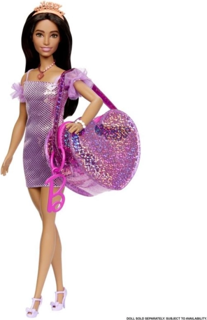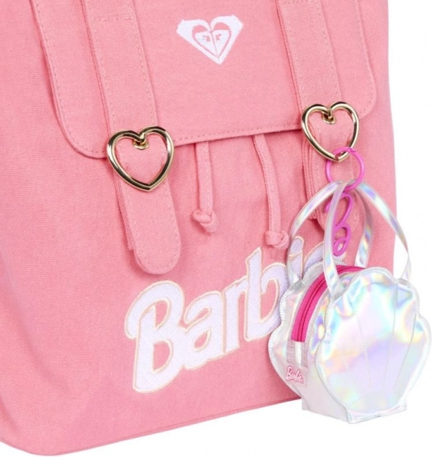 Privlačna torba ističe se zahvaljujući sjajnoj tkanini i detaljima koji podsjećaju na naljepnice, pružajući Barbie izvanredan izgled u pokretu.