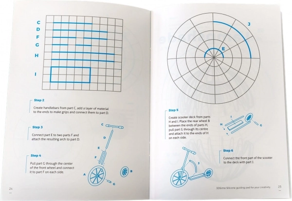 Silikonske podloge za 3D olovke izvrsna su pomoć za precizno i čisto stvaranje. Izdržljiv silikon drži užareni filament na mjestu, pa ćete lakše voditi linije i oblike. U pakiranju se nalazi i brošura s 14 inspirativnih projekata koji će vam korak po korak pomoći započeti i bez prethodnog iskustva.