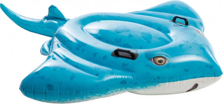 Nafukovací madrac u obliku raže savršen je izbor za ljetnu zabavu u vodi. Zahvaljujući dvjema čvrstim ručkama djeca se osjećaju sigurno i stabilno, bilo u bazenu, na jezeru ili na moru. Velikodušne dimenzije 185 × 145 cm nude dovoljno prostora za udobno ležanje i igru.