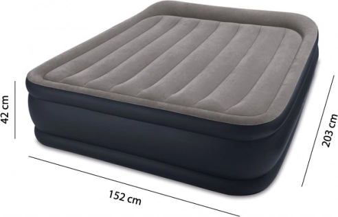 Integrirana električna pumpa omogućuje praktičnu upotrebu bez dodatne opreme – u nekoliko minuta pripremite punovrijedan dvokrevetni ležaj, a nakon ispuštanja ga brzo složite u transportnu vreću. Povišena konstrukcija od 42 cm olakšava lijeganje i ustajanje te pruža udobnost sličnu klasičnom krevetu.