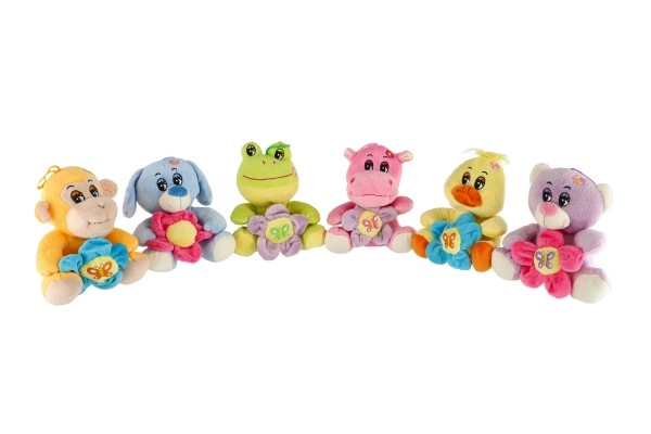 Majmun, psić, žabica, nilski konjić, pačić ili medo – svaka drži šareni cvjetić s motivom leptirića za još više radosti u igri.
