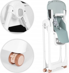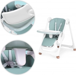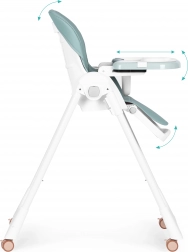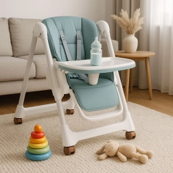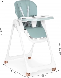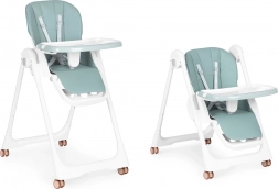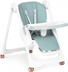 Dvostruki pladanj s povišenim rubovima i držačem za čašu smanjuje nered, a gornji sloj nakon jela jednostavno skinite i operite. Presvlaku od eko kože dovoljno je prebrisati vlažnom krpom. Kotači s gumenom gaznom površinom olakšavaju pomicanje bez ogrebotina na podu, a integrirane kočnice kotača pouzdano fiksiraju hranilicu.