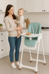 Visina sjedala, nagib naslona i oslonac za noge prilagođavaju se dobi i potrebama djeteta – od prvih zalogaja do samostalnog hranjenja.