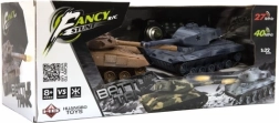 Set donosi sve što vam treba za trenutačno igranje: 2 detaljno izrađena tenka duga 25 cm, svaki na vlastitoj frekvenciji za fer dvoboj bez smetnji. Upravljanje je intuitivno, a kupola se okreće u punom rasponu 360°. Realistični zvučni i svjetlosni efekti pojačavaju atmosferu akcije, a igraći režim s 'životima' odlučuje o pobjedniku bitke.