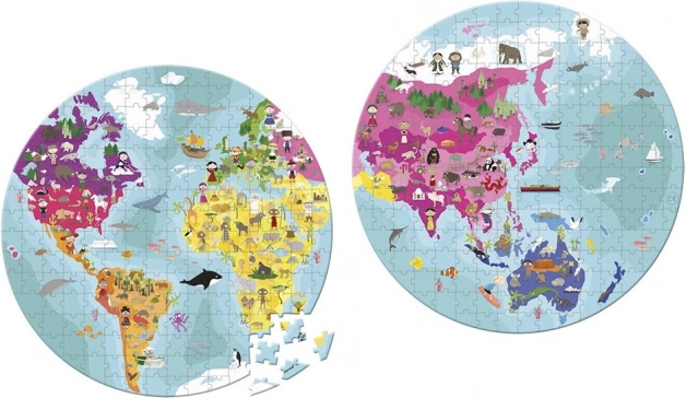 Okrugle puzzle JANOD Zemaljska kugla prekrasno su ilustrirane i idealne za djecu i odrasle koji vole slaganje i otkrivanje. Slažući pojedine dijelove, djeca upoznaju gdje u svijetu žive različite vrste životinja te istovremeno vježbaju koncentraciju.