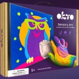OKTO Sova likovna set. Samoutvrđujuća masa (air clay), slikanje prstima. Veličina platna 29x29 cm. Sadržaj pakiranja – platno, slikovni vodič, alati za oblikovanje, samoutvrđujuća masa.