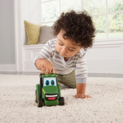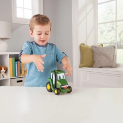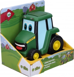 Zabavni traktor JOHN DEERE Johnny za najmlađe donosi jednostavno upravljanje: pritisni krov i vozi! Kompaktna veličina 15 cm idealna je za dječje ruke, a sigurna igračka se nakon otpuštanja brzo pokrene prema naprijed.