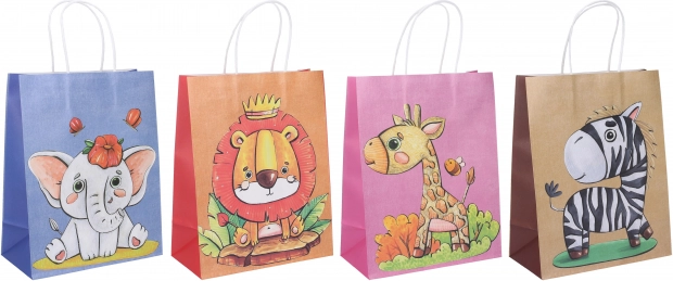 Tražite idealan način da upakirate poklon za djecu za proslavu ili rođendan? Naša dječja poklon vrećica s dimenzijama 25x33x12 cm je najbolji izbor! Sa živopisnim i veselih motiva afričkih životinja kao što su zebra, slon, lav i žirafa, svako dijete će obožavati otvaranje poklona. Vrećica je izrađena od kvalitetnog materijala, dovoljno čvrstog da izdrži i najteže igračke.