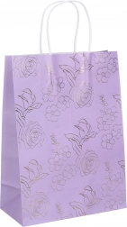 Praktična i stilska poklon-vrećica veličine S s dimenzijama 18,5 × 25 × 10 cm idealna je za manje poklone. Dostupna u četiri moderne boje – siva, ljubičasta, ružičasta i plava. Sjajan izbor za cjelogodišnju upotrebu, čvrstu izradu i elegantan izgled.