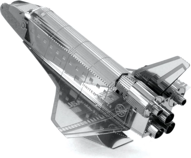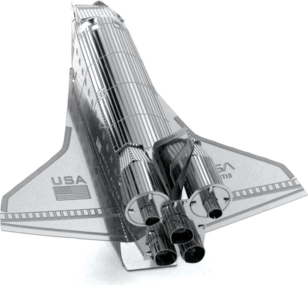 METAL EARTH Svemirski šatl Atlantis je precizan 3D metalni model rezan laserom. Iz kvadratne čelične pločice dimenzija 11 × 11 cm složit ćete vjernu repliku legendarnog NASA-inog orbitera s finim urezima, mlaznicama i natpisima „United States” i „USA”. Sastavljeni model idealan je kao kolekcionarski primjerak i originalan poklon.