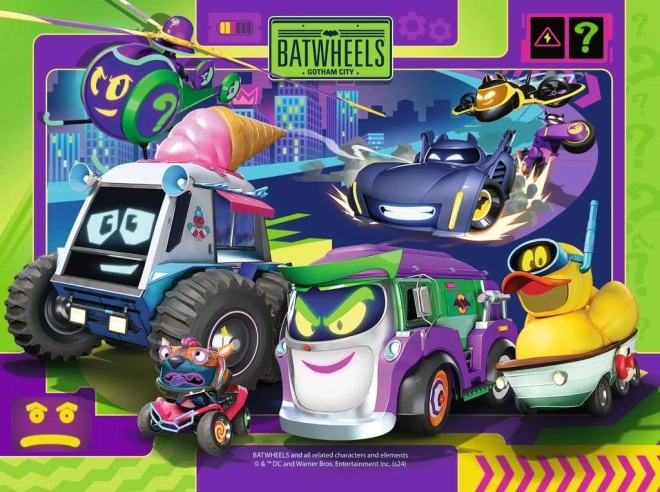 Uživajte u satima zabave i istodobnom razvoju logičkih sposobnosti s našom Puzzle Batwheels 4u1. Ovaj jedinstveni set sadrži četiri slagalice s brojem dijelova 12, 16, 20 i 24, što potiče postupno povećanje razine težine.