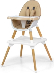 Moguća promjena konfiguracije iz visoke hranilice u set za djecu, uključujući stol i stolicu.