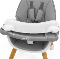 Hranilica se lako prilagođava dobi i visini djeteta. Stabilna konstrukcija omogućuje jednostavno premještanje, a gumene nožice štite pod od ogrebotina.