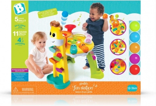 Veseli zabavni centar žirafa idealan je za vaše najmlađe koji će uživati u satima zabave. Ova igračka potiče razvoj motoričkih sposobnosti i koordinacije pokreta.