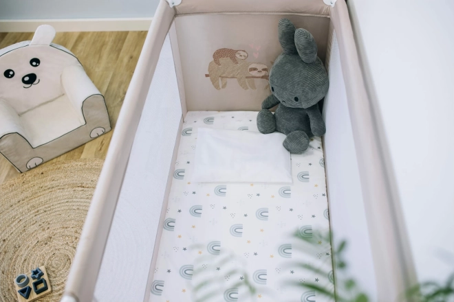 U kompletu je mekani madrac koji osigurava udobno ležanje te transportna torba koja štiti krevetić i olakšava njegov prijevoz. Plavo izdanje s motivom zekana djeluje razigrano i istovremeno se ukusno uklapa u svaki interijer.