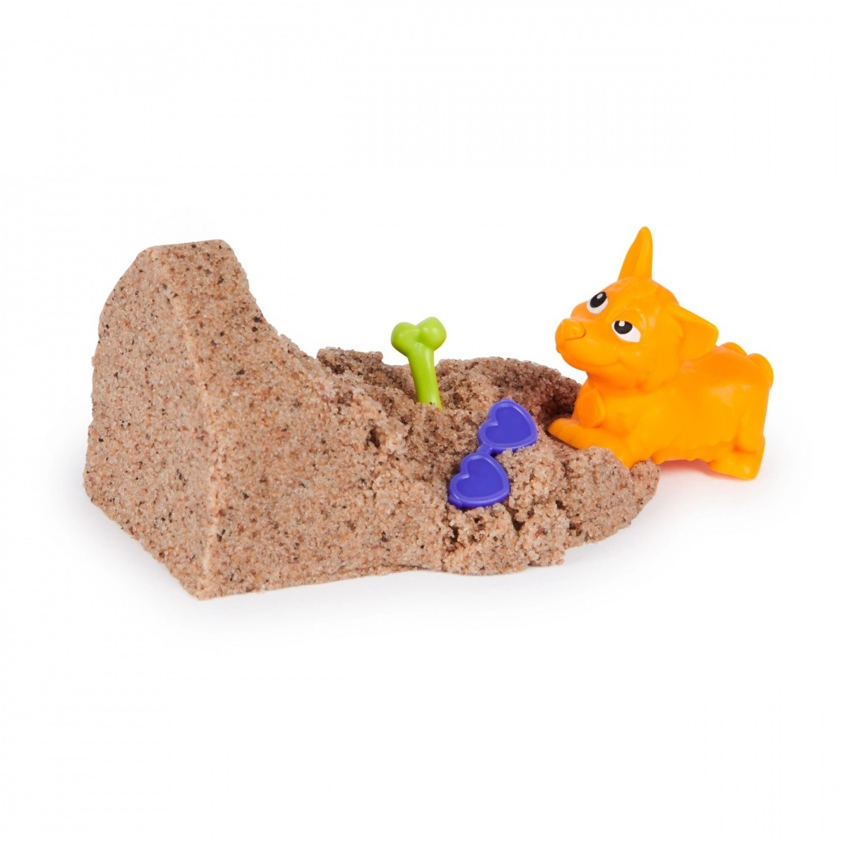 - 170 g plažnog kinetičkog pijeska, 1 figurica šteneta (pečat/kalup/nožić), 2 skrivena blaga, višekratna ambalaža – kućica