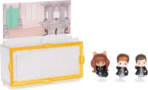 Proživite ikoničnu scenu iz filma Harry Potter i Odaja tajni s detaljnim kolekcionarskim setom Wizarding World Polyjuice Multi Pack. U njemu se nalaze tri figurice od 4 cm (Harry, Hermione, Ron), transparentna kutija u obliku okvira s dvostranom pozadinom kupaonice i postolja. Kutiju je moguće slagati i povezivati s drugim setovima Micro Magical Moments – idealno za obožavatelje i kolekcionare.