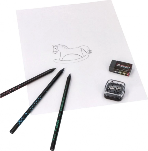 Set olovaka Jolly Next Gen idealan je izbor za djecu i odrasle koji traže kvalitetne crtaće potrepštine. Sadrži sve što vam treba za crtanje: tri olovke, gumicu i šiljilo.