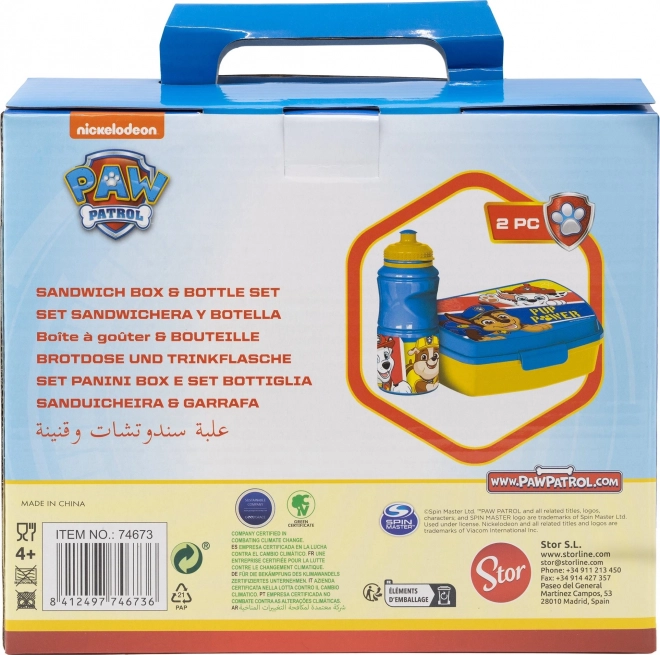 Dječji set za školu, igralište i izlete kombinira kutiju za užinu i bocu za piće 380 ml s omiljenim motivom PAW PATROL. Kutija je izrađena od izdržljive plastike i krasi je atraktivna dekoracija na poklopcu koju će djeca obožavati. Osim za užinu, poslužit će i za spremanje sitnih igračaka i blaga.