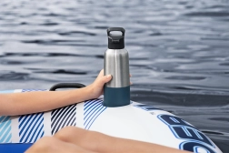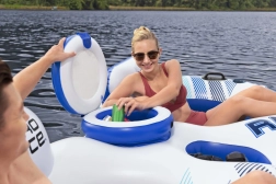 Napuhujući otok idealan je za ljetni odmor na vodnoj površini. Izrađen je od izdržljivog materijala koji osigurava dugotrajnost i jednostavno rukovanje. Zahvaljujući naslonima i dvama držačima za piće, možete doslovno uživati u udobnosti kao na vašem kauču! I to sve uz stalnu temperaturu vaših pića, koju održava ugrađeni hladnjak.