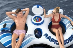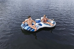 Uživajte u opuštanju na vodi s dvoslojnim napuhujućim otokom. Dizajniran za dvije osobe, nudi udobnost zahvaljujući naslonima, pretincima za odlaganje i mrežastom sjedalu. Uživajte u udobnosti na vodi s ugrađenim hladnjakom i držačima za piće.