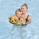 Zaigrani izgled sa zelenim lišćem i nasmijanim životinjskim likom oduševit će djecu i potaknuti sigurnost u vodi.