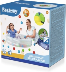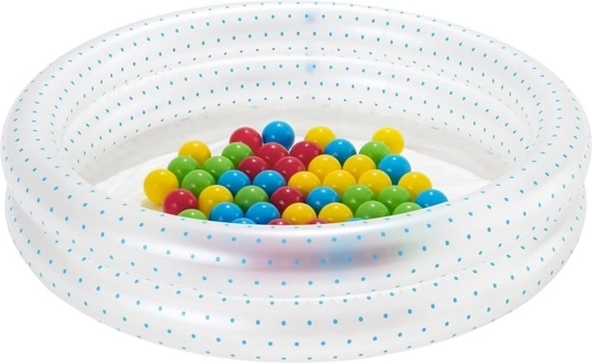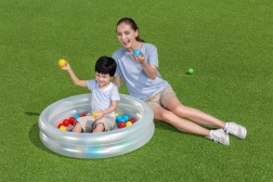 Univerzalan 2-u-1 nafukavajući bazenčić marke BESTWAY služi kao plićak i suhi bazen za loptice. Kompaktne dimenzije 91 × 20 cm, 50 šarenih loptica u pakiranju, izdržljiv vinil i sigurnosni ventili osiguravaju sigurnu i zabavnu igru kod kuće i u vrtu.