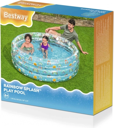 Osigurajte svojoj djeci savršeno ljetno iskustvo s na napuhavanje bazenom Tropical Bestway, koji pristaje u svaki vrt. Ovaj prozirni bazen s atraktivnim motivima duge i sunca osmišljen je za beskrajne sate zabave i osvježenja tijekom vrućih dana.