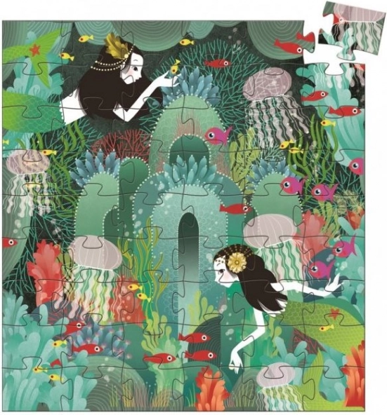 DJECO slagalica Vodeni raj 54 dijelova s motivom morskih sirena. Kvalitetna izrada, dimenzije 40 × 37 cm. Sjajna zabava za djecu i razvoj vještina.