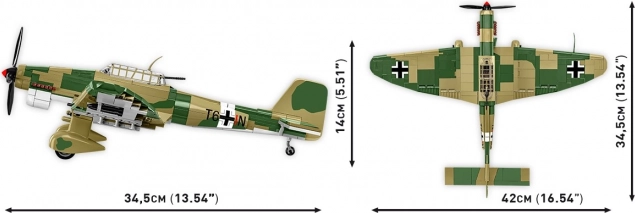 Sastavite ikonični bombarder Drugog svjetskog rata – Junkers Ju 87 B-2 STUKA u mjerilu 1:32. Ovaj realistični set s 525 dijelova nudi detaljan tropski kamuflažni tisk, otvorivu kabinu, pokretna kormila i propeler, okretne kotače s gumenim gumama te poseban stalak za efektno izlaganje „u letu“. U paketu su 2 minifigure (pilot i strijelac/radiooperater) i natpisna pločica modela.