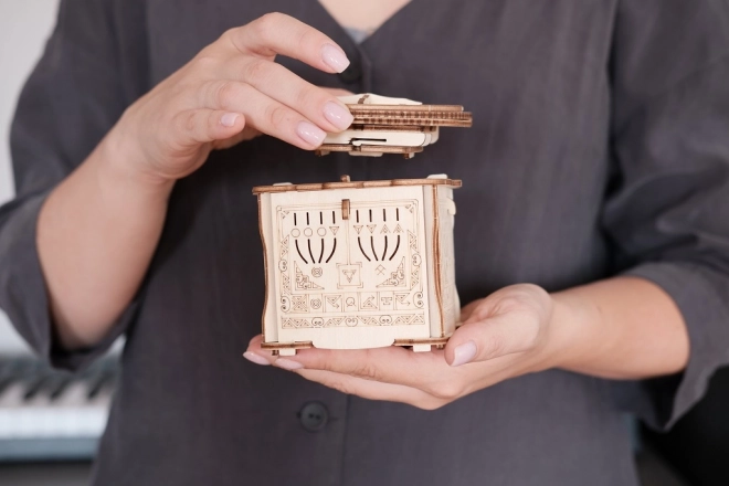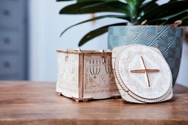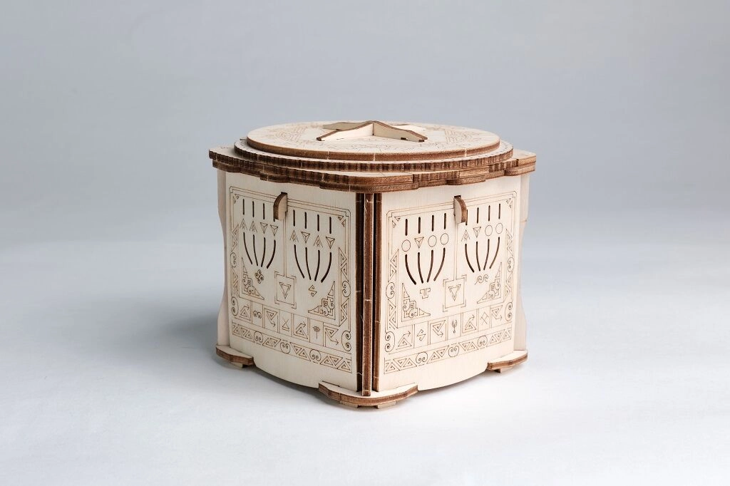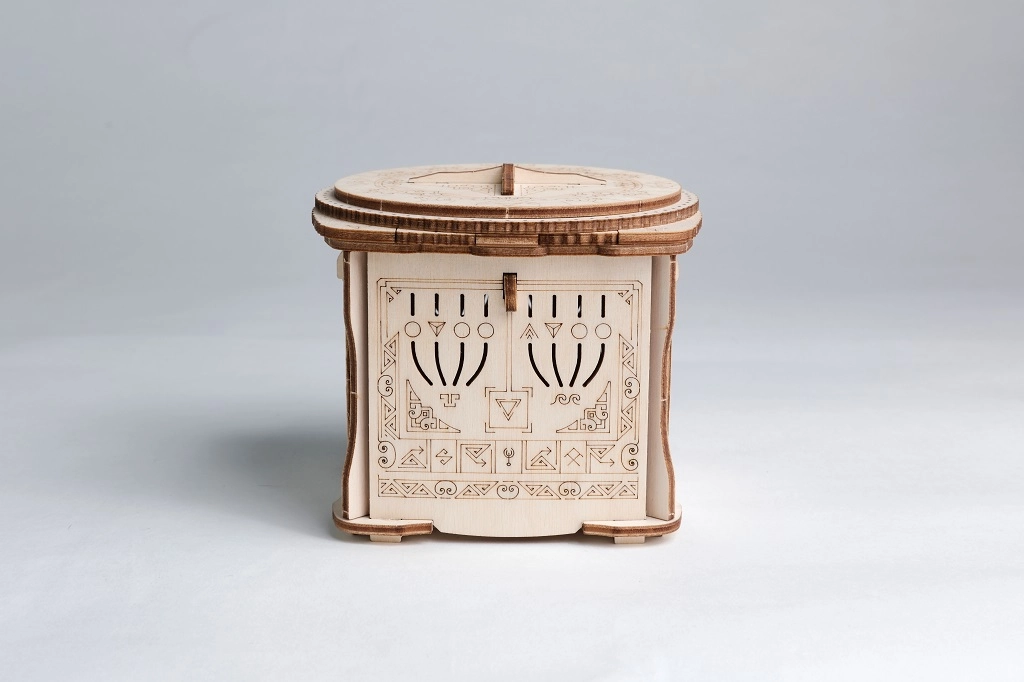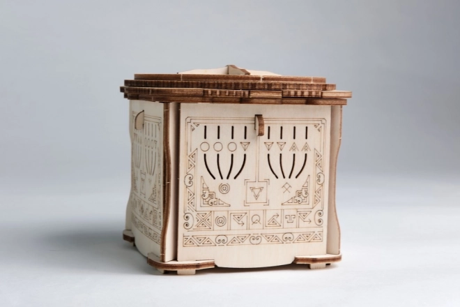 Dekorativno graviranje i promišljen mehanizam osiguravaju zabavu i stilski izgled u interijeru. Kutija služi kao zagonetka i dizajnerski dodatak.