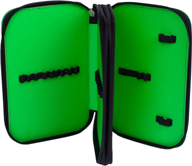 Održavajte red u svom školskom priboru s dvoslojnom pernicom inspiriranom svijetom Minecraft. Zahvaljujući dvama odvojenim pretincima na patentni zatvarač lako ćete razdvojiti olovke, kemijske olovke, markere i ravnalo. Izdržljiv materijal i kvalitetni zatvarači jamče dug vijek trajanja pri svakodnevnoj upotrebi.