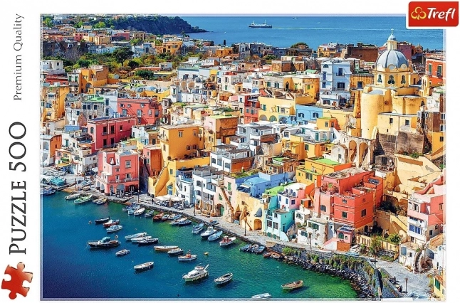 Puzzle prikazuju prekrasan obalni grad Procida s raznobojnim zgradama i veličanstvenim primorskim pejzažem.