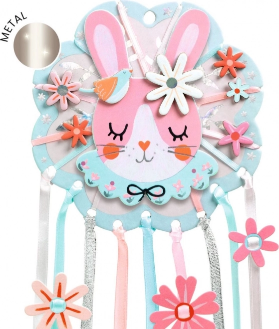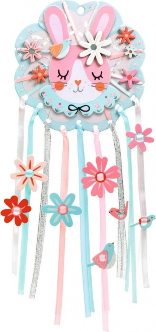 DIY Hvatač snova Zečić od DJECO je kreativni set dizajniran za najmlađe. Djeca mogu ukrasiti glavu zeca tehnikom kolaža i nizati šarene cvjetove na šarene trake i nizove. Na taj način ne samo da razvijaju finu motoriku, već i kreativnost i strpljivost. Cjelokupna izrada prolazi bez korištenja ljepila i škara.