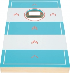 Ova kvalitetna drvena igraća ploča donosi dvije omiljene aktivnosti u jednom kompaktnom izdanju. Na jednoj strani igrate cornhole – bacanje platnenih vrećica u otvor, na drugoj strani stolni hokej – izbacivanje paka pomoću gumice na mete. Zahvaljujući streličastom označavanju bodova umjesto brojeva, rezultat mogu pratiti i mlađa djeca.