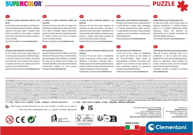 Puzzle CLEMENTONI s preslatkim motivom DISNEY STITCH donose kvalitetnu zabavu za cijelu obitelj. Zahvaljujući preciznom tisku, živopisnim bojama i točnom izrezu, komadići se lako slažu i odlično međusobno pristaju. Idealno za razvoj fine motorike, strpljenja i koncentracije.