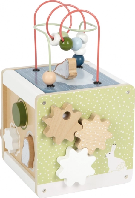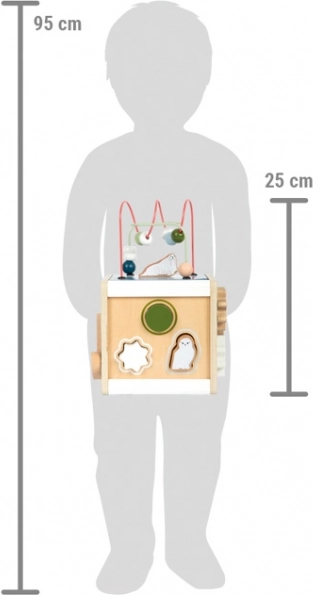 Priredite djeci beskrajnu zabavu i učenje s drvenom motoričkom kockom SMALL FOOT ARCTIC od 100% FSC drva. Na pet strana nudi labirinte s perlicama, umetanje oblika, klizne labirinte, zupčanike i rotirajuće elemente, koji potiču finu motoriku, logiku i prepoznavanje boja i oblika. Odvojivi poklopac olakšava spremanje dijelova, zaobljeni rubovi osiguravaju sigurnu igru, a moderan arktički dizajn lijepo se uklapa u dječju sobu.