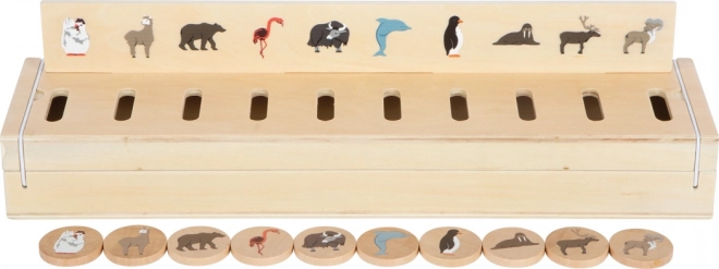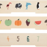 Djeca umeću žetone u ispravne utore prema slikama na panelima – vježbaju logiku, koncentraciju i rječnik na prirodan i zabavan način.