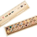 - Ilustrirani drveni žetoni i robusna drvena kutija