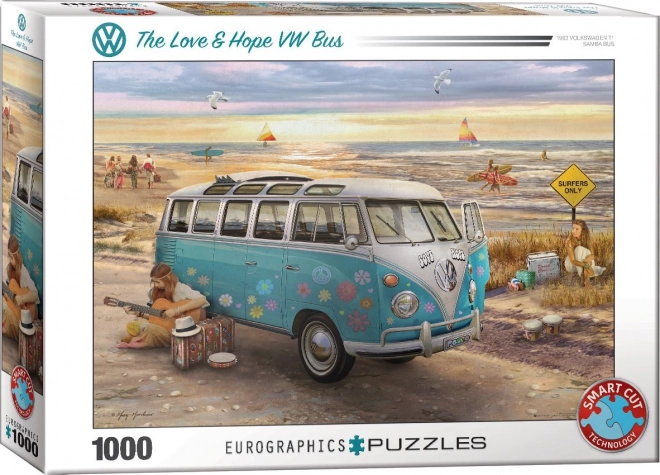 Uživajte u promišljenoj slagalici brenda Eurographics s motivom VW Bus – Ljubav i nada. Zahvaljujući posebnoj, nemrežastoj štanci dijelovi imaju jedinstvene oblike i ne uvijek poravnane rubove, što donosi zahtjevnije i zabavnije iskustvo slaganja.