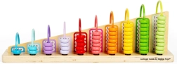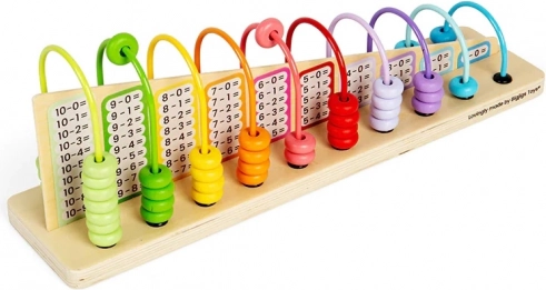 Ovo drveno dugino računalo savršeno je pomagalo za učenje zbrajanja i oduzimanja. Djeca će uz ovu igračku vježbati kognitivni razvoj, poboljšati svoju koordinaciju ruka-oko i usvojiti strpljenje i logičko razmišljanje. Računalo sadrži ukupno 56 šarenih dijelova uključujući 55 perli i jednu drvenu ploču.
