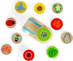 Drveni mikroskop s lećama i diskovima potiče djecu na istraživanje i kreativnost.