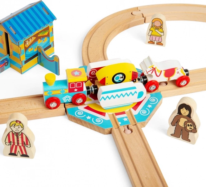 Oživite dječju drvenu željeznicu ovom okretnom prugom s dvije šarene čajne šalice na okretnoj bazi. Šalice djeluju kao željezničke rampe, omogućujući djeci da uključe svoju maštu i uživaju u satima zabave.