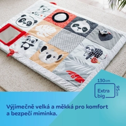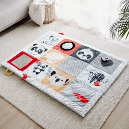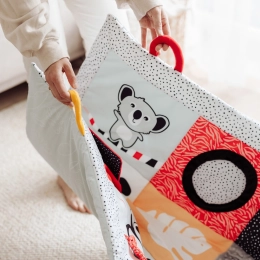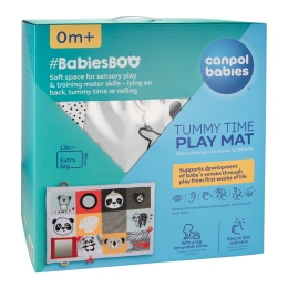 Senzorna edukativna podloga Canpol babies za ležanje na trbuhu iz kolekcije BabiesBoo siguran je i ugodan način da dijete ostane aktivno te omogućuje roditelju trenutak za sebe ili obavljanje kućanskih poslova. Podloga je iznimno velika i mekana – 130 x 95 cm pruža vašem mališanu udobnost i sigurnost. Edukativna podloga Canpol babies lako se sklapa, ima praktičnu ručku zahvaljujući kojoj se jednostavno prenosi, pa možete stvoriti dječji kutak gdje god vam zatreba. Veliko ogledalo potiče i produljuje vrijeme provedeno na trbuhu, tijekom kojeg beba svaki put može istražiti različite dijelove podloge. Mnogo senzoričkih elemenata uključuje djetetova osjetila: vid, sluh i dodir. Različite teksture materijala, kontrastne boje i uzorci te nježni zvukovi odlična su zabava za razvoj osjetila vaše bebe od prvih trenutaka života. Senzorna edukativna podloga Canpol babies pomaže u osiguravanju pravilnog motoričkog razvoja svakog djeteta. Podlogu je moguće prati u perilici rublja. Dječji prostor svuda gdje nam je potreban. Preporučila fizioterapeutkinja Magdalena Zujewicz – dječja fizioterapeutkinja, odgojiteljica i SI terapeutkinja. Iznimno velika i mekana podloga pružit će vašoj bebi udobnost i sigurnost. Veliko ogledalo pobudit će interes bebe i produljiti vrijeme provedeno ležeći na trbuhu. Mnogi elementi koji uključuju djetetova osjetila: vid, sluh i dodir. Lako se sklapa zahvaljujući praktičnoj ručki koja olakšava prenošenje. Kontrastne boje i uzorci potiču razvoj djetetovog vida. Podržava razvoj osjeta dodira i vježba manualne vještine. Razvija koordinaciju ruka-oko i slušno-motoričku koordinaciju. Jednostavna za održavanje čistoće – može se prati u perilici. Idealna za djecu od prvih trenutaka života. Igračka je izrađena od sigurnog materijala bez bisfenola A. Dimenzije podloge: 130 x 95 cm. Upute za uporabu: Način čišćenja naveden je na etiketi. Podlogu, osim ogledala, perite u perilici rublja na maksimalnoj temperaturi 30°C u nježnom programu. Održavajte igraću podlogu čistom. Igraću podlogu, osim ogledala, perite u perilici na maksimalno 30°C uz korištenje nježnog programa. Koristite blagi deterdžent za dječju odjeću. Perite odvojeno. Ogledalo obrišite vlažnom krpom. Uklonite zaštitnu foliju s ogledala. Upozorenje! Važno za zdravlje i sigurnost vašeg djeteta! Prije svake uporabe pažljivo provjerite. Istrošenu/oštećenu igračku zamijenite novom. Upozorenje! Držite podalje od izvora vatre. Sačuvajte upute za kasniju uporabu. Podloga ispunjava zahtjeve: Direktiva Europskog parlamenta i Vijeća 2009/48/EZ o sigurnosti igračaka. EN 71 - 1 Sigurnost igračaka - Dio 1: Mehanička i fizikalna svojstva. EN 71 - 2 Sigurnost igračaka - Dio 2: Zapaljivost. EN 71 - 3 Sigurnost igračaka - Dio 3: Migracija određenih elemenata.