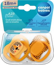 Dude Canpol babies BabiesBoo 18m+ dizajnirane su za udobnost i sigurnost djece od 18 mjeseci. Simetrična cucla od nježnog silikona prirodno se prilagođava u ustima bez obzira na položaj te podupire fiziološki ritam sisanja i pravilan razvoj govora. Prozračeni štit smanjuje pritisak na obraz i pomaže spriječiti iritacije kože.